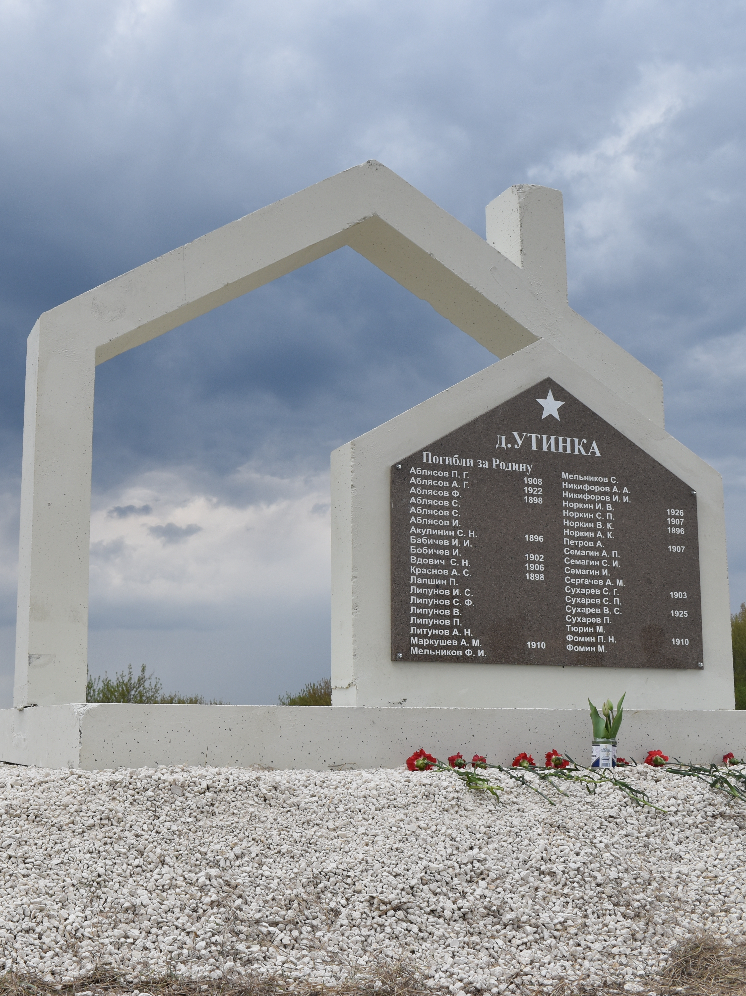 Мемориальная стела установлена в честь 75-летия Победы. На плите выбиты фамилии фронтовиков – уроженцев деревни Утинка.